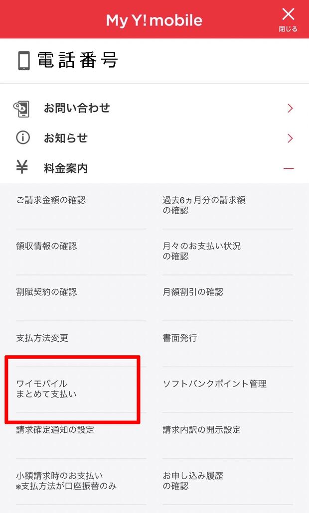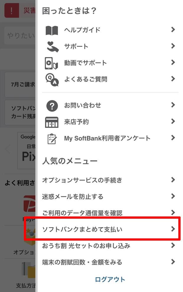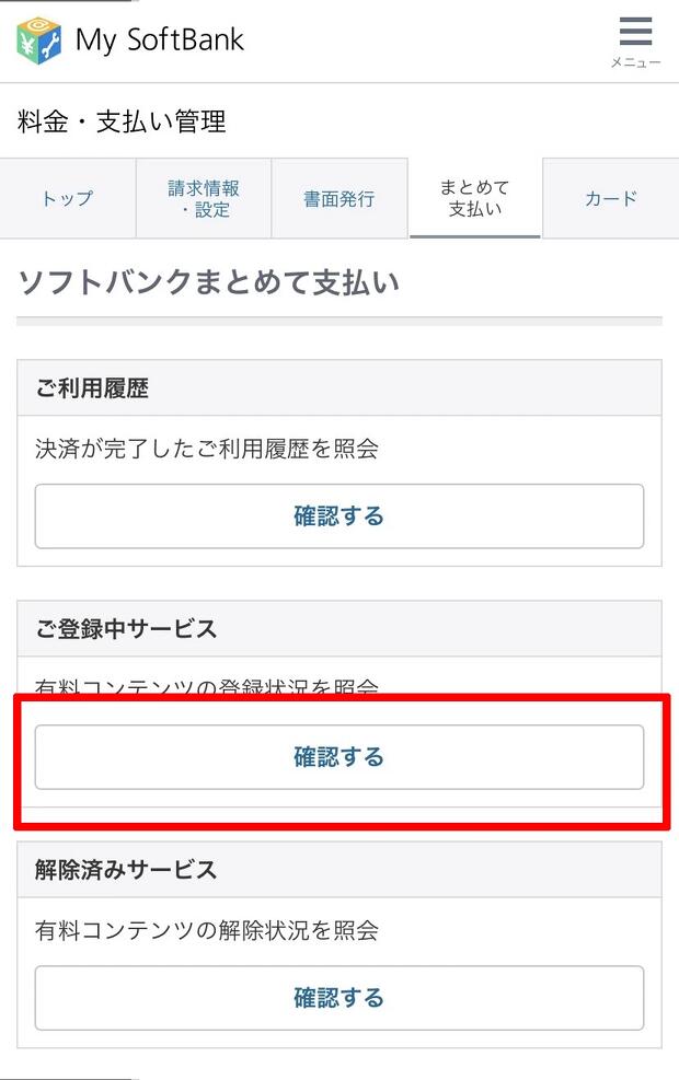 4.メニュー内「ソフトバンクまとめて支払い」タブを選択
