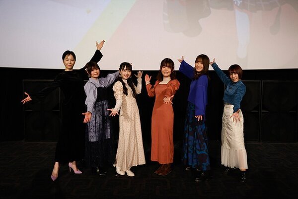本編の上映後、柊 望有(ひいらぎ・のあ)役の森 なな子さんの司会で、キャストトークはスタート。鳳 ここな役の石見舞菜香さん、静香役の長谷川育美さん、新妻八恵役の長縄まりあさん、柳場ぱんだ役の大空直美さん、流石知冴(さすが・ちさ)役の佐々木李子さんが登壇しました。