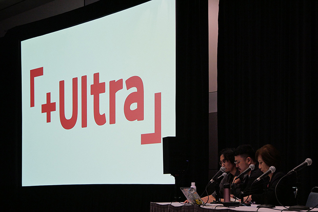 まず、フジテレビの森彬俊プロデューサーとクランチロールの山口貴也プロデューサーが登壇。日本のアニメを世界に広めたいという意図のもと枠を設立したという経緯を語りつつ、現在は日本以外の各国で動画配信サービスを運営しているクランチロールと協業していると「+Ultra」についての紹介が行われました。