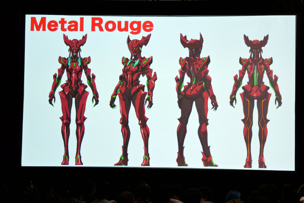二人の登壇後には、初解禁となる第2弾ティザーPVが上映! ルジュとナオミのバディ感溢れるバトルシーンとグラディエーターへの変身シーンが公開されました。南さんは「これまでのオリジナルアニメ制作とは違って、本作では(総監修・シリーズ構成を務める)出渕裕さんと一緒に世界観の構築から始めました。舞台は太陽系全体。この壮大な世界観では、「メタリックルージュ」以外のドラマも生まれるかもしれません」と作品の巨大さをアピールしました。