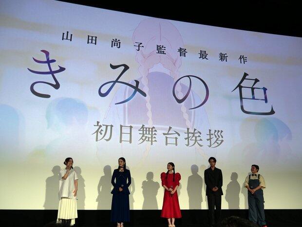 2024年8月30日、同日に公開された『きみの色』の初日舞台挨拶がTOHOシネマズ日比谷で行なわれました。ステージには山田尚子監督に加え、日暮トツ子役の鈴川紗由さん、作永きみ役の髙石あかりさん、影平ルイ役の木戸大聖さん、百道さく役のやす子さんが登場し、『きみの色』についてトークを交わしました。