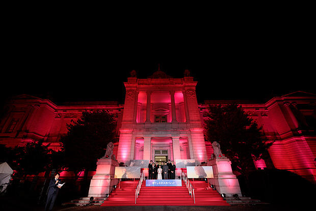 ライトアップされた東京国立博物館・表慶館と登壇者の皆さん