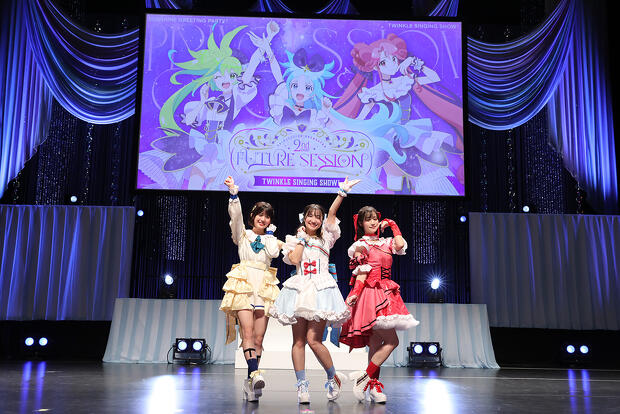 毎週日曜あさ9時よりテレ東系6局ネットほかにて放送中のオリジナルTVアニメ『プリンセッション・オーケストラ』の2ndイベント「FUTURE SESSION」が、2025年12月21日にKAAT神奈川芸術劇場にて開催されました。昼公演「SUNSHINE GREETING PARTY!」には空野みなも/プリンセス・リップル役の葵 あずささん、識辺かがり/プリンセス・ジール役の藤本侑里さん、一条ながせ/プリンセス・ミーティア役の橘 杏咲さんら3人のキャストが登場し、ファン参加型のゲームコーナーやエピソード総選挙の結果発表を見ながらのトーク、そしてミニライブなど盛りだくさんの内容で楽しませてくれました。ここでは夜公演「TWINKLE SINGING SHOW!」の模様を詳しくレポートします。