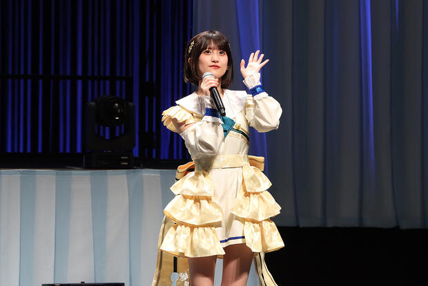 これらはいずれも第2クールで使用された楽曲で、前回の『プリンセッション・オーケストラ』のイベントが2025年8月3日開催だったため「FUTURE SESSION」ともどもライブでは初披露。「イヤモニを貫通する歓声が聴こえてきて……!」と葵さんが驚くくらい、会場のボルテージはさらに熱くなっていきます。それでも「もっと熱くなる予定なので」と橘さんが予告するように、ライブのお楽しみはまだまだこれから。まずはキャラクターソング投票企画にて選ばれた3曲を披露します。空野みなもの「キミだからいいんだ!」はみなもらしい明るく爽やかな1曲で、歌う葵さんの笑顔もキラキラと輝いていました。識辺かがりの「STARLIGHT」は第1話のかがりのライブシーンで歌われていた楽曲で、「本来(アニメ本編中では)じわじわと(ステージに)上がってくる。そのつもりで立っていました」と言う藤本さんの堂々とした佇まいはまさにかがりそのものでした。一条ながせの「人生は流星だ☆彡」は第5話の特殊エンディングとして使用され、コロコロと目まぐるしく変わる展開で視聴者の度肝を抜いたインパクトの強い1曲。相当な難曲だろうと思われますが、橘さんは生のステージで見事に歌いきっていました。