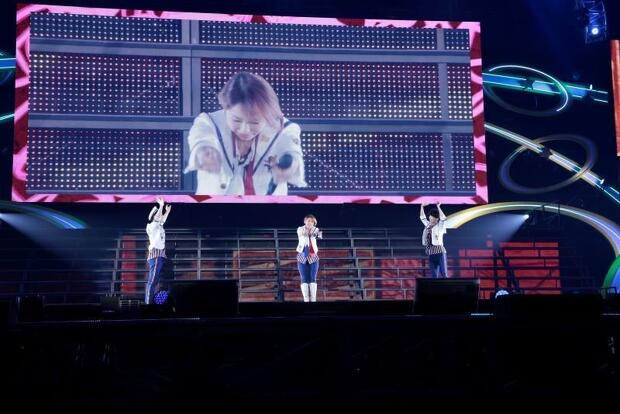 冒頭からクレッシェンドに次ぐクレッシェンドが大波を生み、陽気なトロピカルサンババージョンの「Fine Day! Find Way!」の流れるなかでアイドルたちが総登場。曲間では「みんなとつながる」というライブテーマにちなんで、リズムにあわせてアイドルの名前とともに「この夏にしたいこと」を言っていくという新鮮な自己紹介が行なわれました。こうして「全体曲から始まるもの」というナンバリングライブのセオリーを打ち壊し、もはや何が起きても不思議ではない9年目のステージの幕が開きます。