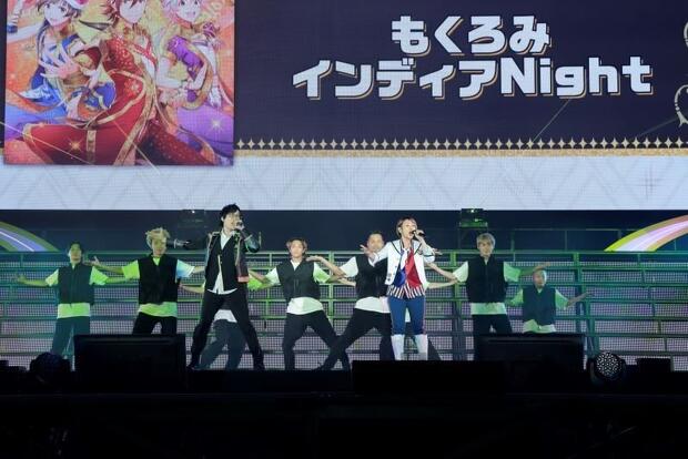 夏にピッタリな「流星PARADE」に始まる「みんなとつながる!SideMメドレー!」では、1曲、1曲、リリース時の思い出や愛おしさに感情が揺さぶられていきます。ライブ初披露となった「もくろみインディアNight」は、寺島さんと三瓶由布子さんがダンサーを引き連れて踊るボリウッド映画のような一幕に。その興奮のまま、全員参加してうちわを手に歌われた「笑顔の祭りにゃ、福来る」ではプロデューサーたちも「どっこいしょ!」と景気のいい声を上げ、多幸感あふれるにぎわいとなりました。