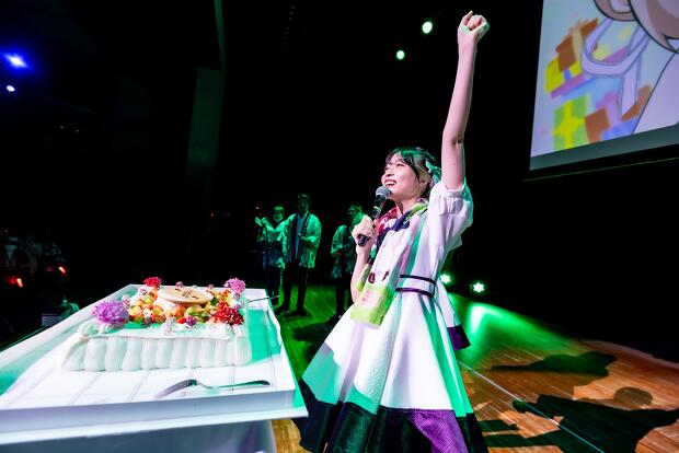 エンディングトークとして村上さんと高木さんが締めのあいさつを行ない、残るは吉岡さんのみ……となったところで、彼女にはサプライズで誕生日のお祝いがスタート。11月7日生まれということで「全然先だよ!」と鋭くツッコみつつも、吉岡さんは飯坂温泉の人々から花束とケーキをプレゼントされ、会場中からの「ハッピーバースデートゥーユー」の歌を受け取ると満面の笑みを見せます。そして最後はみんなでケーキを食べ、熱気と祝福ムードに包まれてイベントは幕を下ろしました。