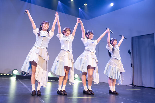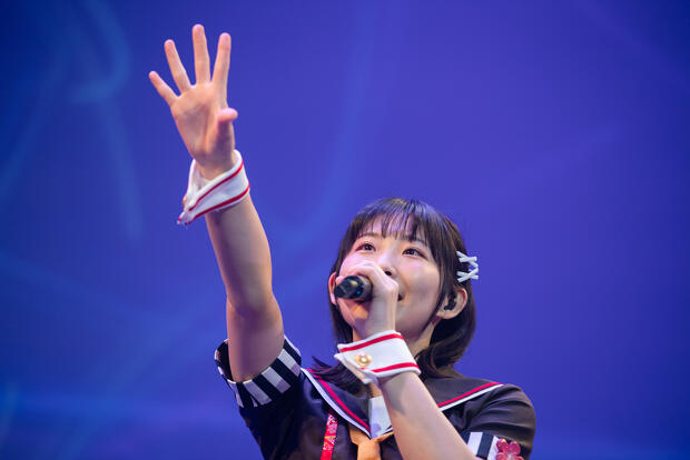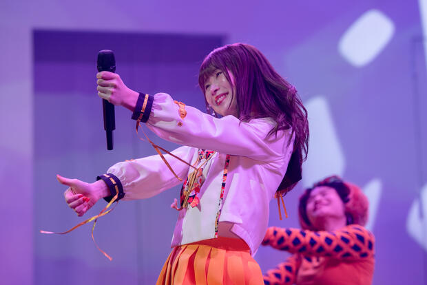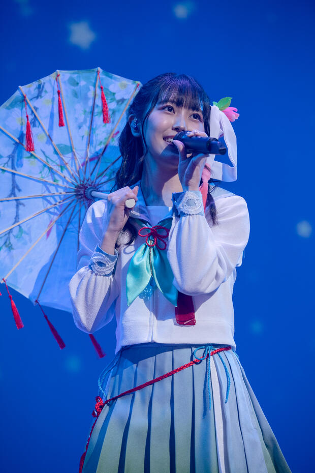 さらに4人はソロ曲もそれぞれ披露し(うち3曲は初披露)、進藤さんは「ココロコノママ」で小道具のカメラを見失ったものの、マイペースなかみのやまらしくそんなトラブルを感じさせないパフォーマンスを見せ、鈴木さんは圧倒的な歌唱力で「まつりごと」を、立石さんはミステリアスな表情を見せながらバラード「雨の雫」を歌い上げます。そして反田さんは「気分はストレンジャー」で連発される「ぐるぐるぐるぐる」という印象的なフレーズで観客に回ってもらい、不思議な空間を作り出すことに成功。それぞれの“らしい”ライブアクトで観客にキャラクター性を伝えていきました。
