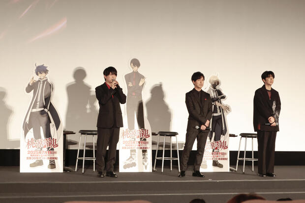 2025年7月11日から放送開始となるTVアニメ『桃源暗鬼』のジャパンプレミア(先行上映会)が、6月21日にユナイテッド・シネマ豊洲で行われました。TV放送に先駈けて第1~3話の上映後に行われた、一ノ瀬四季役・浦 和希さん、無陀野無人役・神谷浩史さん、皇后崎 迅役・西山宏太朗さんによるトークショーの模様をレポートします。