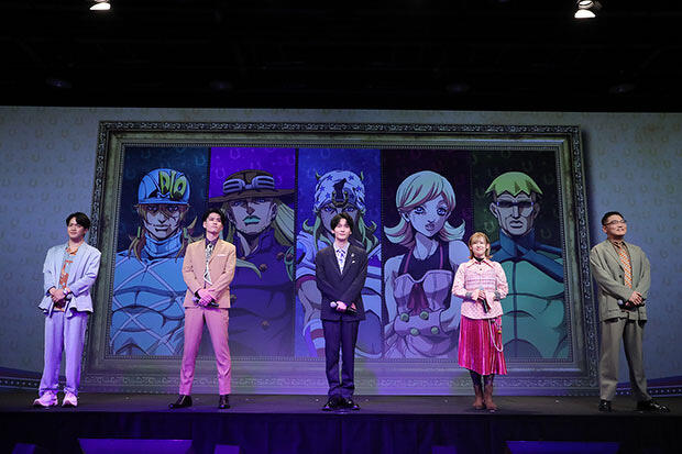 ジョニィ・ジョースター役の坂田将吾さん、ジャイロ・ツェペリ役の阿座上洋平さん、ディエゴ・ブランドー役の石川界人さん、ルーシー・スティール役の高橋李依さん、スティーブン・スティール役の三宅健太さんが登壇。ジョニィ・ジョースター役の坂田さんは開口一番、自分の役名を噛んでしまうという、ちょっとしたトラブルを起こしてしまいます。それだけ「ジョジョ」の主演とはプレッシャーの大きいものなのでしょう。緊張感で張りつめていた会場の空気がやわらぐなか、それぞれのキャストがオーディションのときの思い出とこの作品にかける意気込みを語ってくれました。