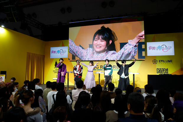 冒頭の挨拶では、木下うたげ役・早見沙織さんによる「多聞くんは神!」のコール&レスポンスが行われるなど、客席の「E/YES」(「多聞くん今どっち!?」に登場するアイドルグループ・F/ACEのファンネーム)たちも巻き込んで大盛り上がり。続くトークコーナーでは「反響」「役づくりへのこだわり」「うたげちゃんがF/ACEにもたらしたもの」という3つのテーマで、これまでを振り返っていきました。国内、そして海外からの熱い応援がキャスト、スタッフ陣にしっかり届いていたことが明かされたほか、福原多聞役・波多野翔さん、甲斐倫太郎役・長岡龍歩さんの意外な(?)役づくりの裏話も飛び出します。