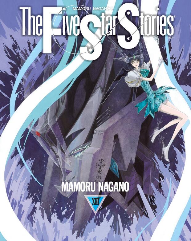 タイトルは、氷の女王カイゼリンの周りで強制冷却された粉雪という意味だ。が、紫の水晶になってしまっている。これは下絵の段階で先に考えていたイメージのタイトルと完成したらなんか変わっちゃった、という例である。とほほ。長い休載を経てようやくGTMとなった「ファイブスター物語」。やりたいことはこれじゃボケ!と言わんばかりのフルパワーで描かれた第13巻の表紙絵は、その勢いもあって2か月かからないで仕上げられた。ファティマ・町はさらに細くなり、ファティマの体型も異次元化している。展覧会に来られた方は最後のスペースに置いてある実物大カレンの2メートルを超える身長よりも人間の太ももよりも細い胴体にびっくりされたと思うが、あれがファティマ体型である。