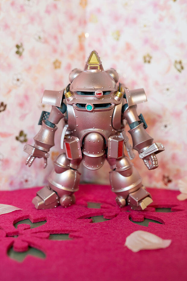 光武にはメタリックのさくら色を重ね塗りし、質感に気を遣いながら作成したとコメント。組んだプラモデルを一度分解して塗装するという工程に最初は戸惑ったといい「壊れてもどうにかなる」と言われて分解したら見事に壊れてバラバラになってしまった、というアクシデントもあったそうです。そのため、じつはよく見るとところどころに必死に直した跡があると苦笑しながらも「知っていますか、プラモデルって治るんですよぉ!?」と、当時の驚きを思い返していました。