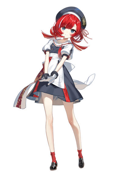 スコッティ 髪型は、頭部のシルエットにアクセントを加えられるようにくるっと巻いています。袖やスカートは単一の布地で質素にならないよう、切れ目を入れて中に別の色の布を差し込むなどして情報量を増やしました。描き込みの際に、こういった髪や布の質感を表現する作業はおもしろかったです。