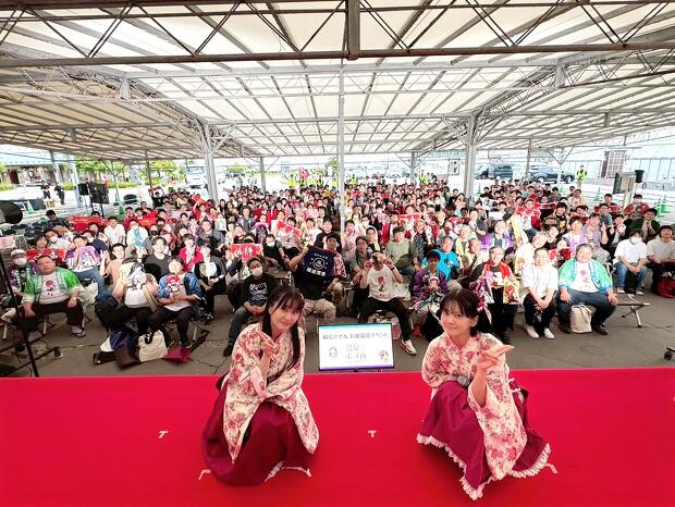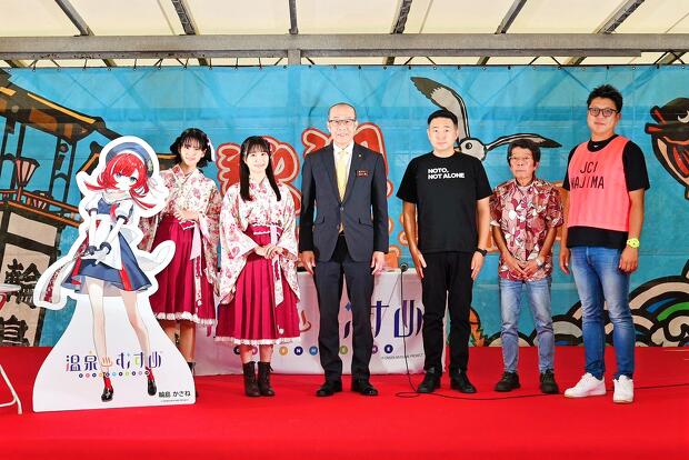 イベントが始まり、大西さんと相良さんが観客と恒例の「チョイナー!」コールを交わすと、ステージには輪島市長の坂口茂氏がゲストとして登壇。「ようこそ輪島市へ、チョイナー!」と元気よくあいさつしたのち、能登半島地震と豪雨という2つの大きな災害に触れ、「復興には時間がかかっていますが、かさねちゃんのバックアップを受け、大西さんらの協力を得ながらしっかりと復興し、充分に回復して皆さんをお迎えしたい」と力強く語りました。