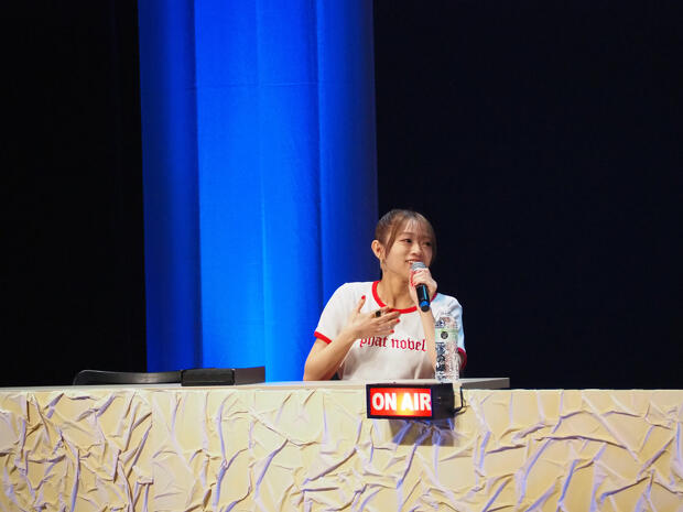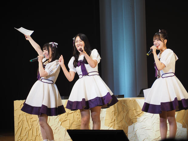 日本全国の温泉をモチーフにしたキャラクターと声を担当する声優たちが、温泉地を盛り上げるプロジェクト「温泉むすめ」からは、福地珊瑚役の反田葉月さん、長良川かがり役の三谷綾子さんという岐阜の温泉むすめを担当する声優と、月岡来瑠碧役で岐阜県出身である西田望見さんの3人が出演しました。