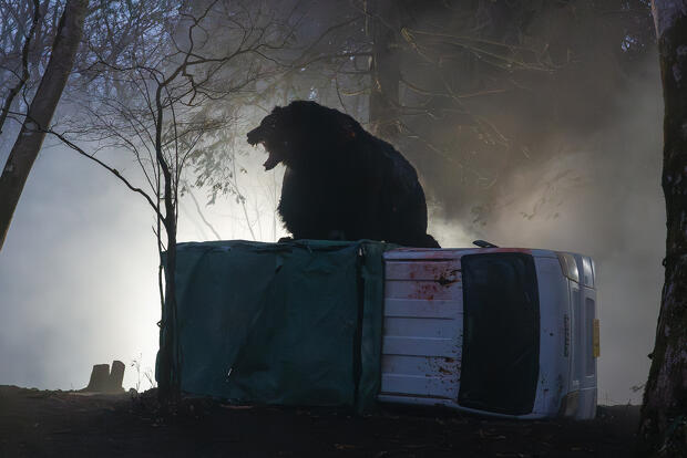 もちろん、本邦にも〝三毛別ヒグマ事件〟をモチーフにした「リメインズ 美しき勇者たち」や村ぐるみで山に捨てられた老女たちがヒグマと死闘を繰り広げる「デンデラ」といった傑作クマ映画が存在する。実際、日本人からすればサメ以上に身近で恐ろしい動物がクマだ。特に近年は、クマの人里への出没や人身被害が相次いでいる。その原因はハンターの減少による個体数増加、里山の放棄ならびに農村部の過疎化、山林の食物の凶作などさまざまだが、いずれにせよ都心部に住んでいる人々にとっても他人事でなくなりつつあるのが現状と言えよう。かつて66頭もの放牧牛を襲い、その神出鬼没ぶりから〝忍者ヒグマ〟と恐れられたOSO18のニュースを覚えている方も多いのではないか。