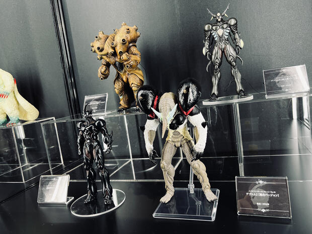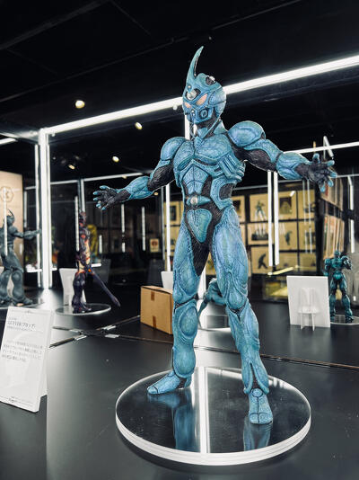 展示物はマックスファクトリー製品だけに留まらず、プライム1スタジオの特大スタチューやフューチャーモデルズから発売された竹谷隆之原型のEROSIVE GUYVER、韮沢靖原型のFAILED GUYVER、さらには実写映画版を監督した造形作家のスティーブ・ワンがみずからペイントしたというプロップレプリカまで陳列されている。