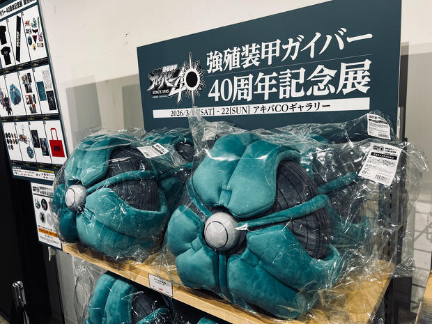 さらに本展限定のグッズ販売もあり、Tシャツや缶バッチ、クリアファイルといった定番アイテムだけでなく、ユニット・ガイバーのクッションのような変わり種まで取りそろえられていた。また、ファンにとって印象的なカラーイラスト群の複製原画も予約受付中。先にも述べたように、会場には本物の原画(こちらは撮影不可)が飾られているため、来場記念として展示体験そのものを持ち帰ることができる仕組みになっているわけだ。詳しくは、公式サイトを確認されたし。