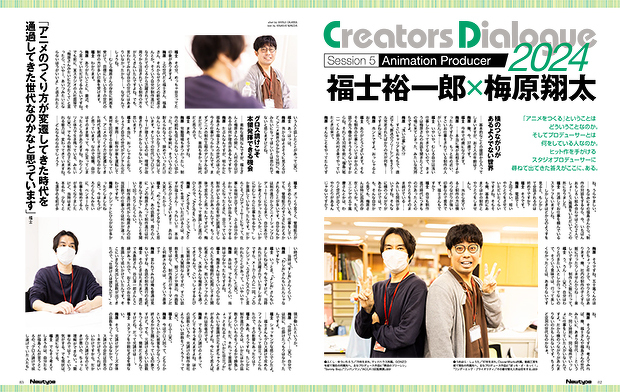 アニメーション現場における各セクションのクリエイターが対峙し、現状について話し合う「Creators Dialogue 2024」。現在発売中のニュータイプ6月号ではアニメスタジオのプロデューサーであるマッドハウス・福士裕一郎さんとCloverWorks・梅原翔太さんの対談を掲載。1万字近くに及ぶ記事の中から最初の部分をお届けします。