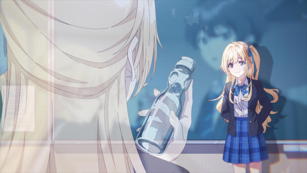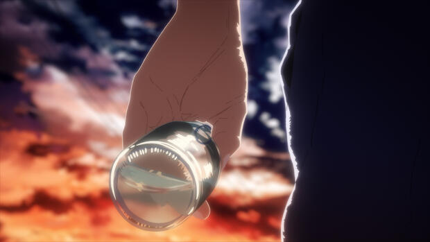 猫富 私の段階ではほとんどキャラ表を見ずに作業をしていたんですけど、でもまあきっと作監のお2人がいい塩梅に戻してくれるだろうと思っていたら、「気持ちを優先したらこのままがいいと思う」みたいな感じで、すごく拾ってくださって。今のルックになりました。ラムネ瓶の修正もすごくて(「月刊ニュータイプ」1月号記事参照)どうしてそこまで頑張れるのか……とクラクラしました。今まで自分は、自分の担当している演出回に関しては、自分が一番頑張ってるって思っていたんですよ。「私以上にこの話数(OP/ED)を愛してる人間はいない!」とか思っちゃっていたんですけど、今回は人の手によってつくられている感覚がめちゃくちゃありました。穂積さん、栁川さん、アクション作監のあもーじーくんが作品をぐんと引きあげてくれました。私なんか、何かがアップされるたびに「すげーいい!」「神!」とか返していただけで、気づけばあの映像が出来上がっていた、みたいな。あもーじーくんも「エフェクト表現今までと違う感じにしたくて」と言ったら、「こっち系?」みたいにその場で描いてやりとりしてくれて。それも含めて楽しかったです。やっぱりこうやって新しいものをつくっていかないといけないなってあらためて思いました。私は絵が全然描けなくて、あんまりキャラ絵が描けないので、キャラの修正はほぼ入れてないんですけど。