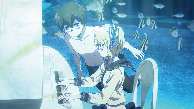 海辺の町に暮らすトシヒデは、人魚の母と人間の父のあいだに生まれた少年。ふだんは陸で暮らしているが、母親ゆずりの体質で海中で呼吸をつづけることができる彼は、ときおり海の底に捨てられている人魚のピアノを演奏するのを密かな楽しみにしていた。ある日、いつもどおりにピアノの演奏を堪能していたトシヒデは、その音を隠れて聴いていたかわいらしい人魚のシジュと出会う。少しずつ距離を縮めていく2人。だが、人と人魚のあいだには深くて暗い溝があって……。キャラクターデザインは「この世界は不完全すぎる」(総作画監督)の島崎望。音楽は「庭には二羽ニワトリがいた。」の石塚玲依が続投。アニメーション制作は「中禅寺先生物怪講義録 先生が謎を解いてしまうから。」の100studio。
