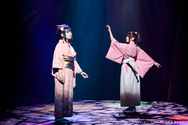 山南を演じるのは同役で長くシリーズを支えてきた輝馬。新選組の中ではいち早く羅刹となり望まぬ形で集団からはみ出しながらも自分だけのやり方で「誠」を貫いてきた山南は、これまではどちらかというと狂気を強く滲ませるキャラクター造形だった。しかし本作では圧倒的な歌唱力と抑制の効いた感情、そして深い愛情とほとばしる情熱と信念とを内包した山南として、誰よりも真っ直ぐに、そしてスタイリッシュに魅せていく。そんな山南を誰よりも理解し、決して見失うことなくしなやかな愛情で鼓舞し続ける雪村千鶴を演じるのは青木志穏。輝馬のハイトーンと青木の澄んだ歌声が奏でる“愛の歌”の美しさも眩しかった。