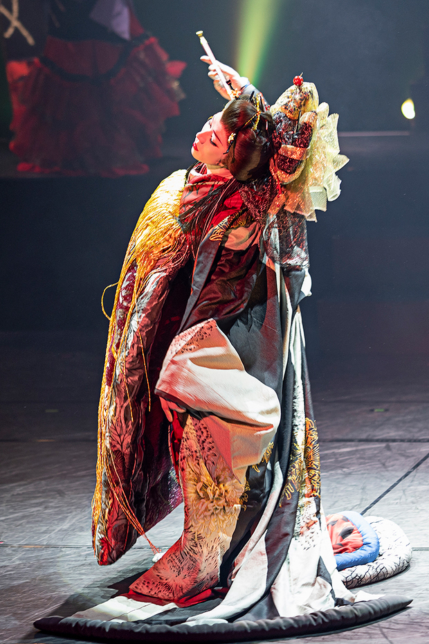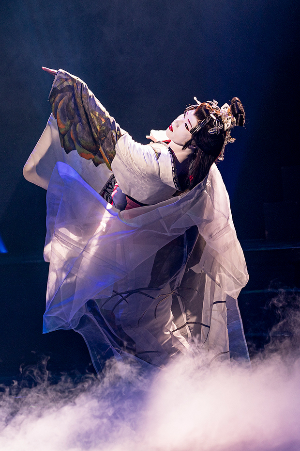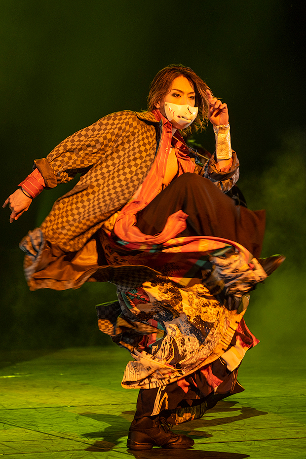約2年半ぶりの再始動となる、劇団朱雀の新作公演『祭宴』が2023年5月19日(金)かめありリリオホールにて開幕。第一部、美しい女形で舞踊ショーを披露したのは、劇団朱雀二代目座長の早乙女太一さん。