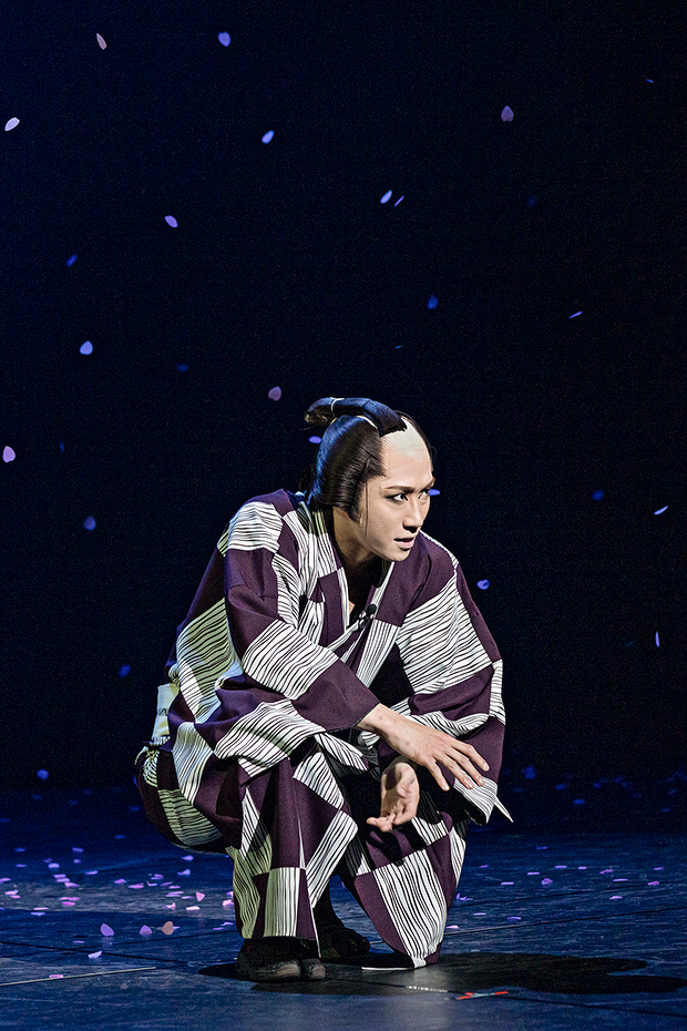 舞台は江戸、桜満開の季節。自身の根本で起こった悲劇を、ただ見つめることしかできず苦しむ桜の精は、しかし、唯一、己の姿を見ることができる金さんと出会うことで物語は転がり始めます。中島かずきさんならではの、悪を蹴散らし正義が勝つ愉快痛快な展開には思わず拍手喝采が。小気味よく悪役たちをバッサバッサと斬り捨てる殺陣も必見です! 無力だと悲しみ、悪に堕ちる桜の精に、美しく咲くことこそに価値がある──そう諭し、悪党どもを成敗する、その姿に魅せられます。
