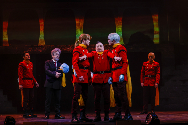赤ちゃんながら優れた頭脳と超能力をもち参謀役ともいえる活躍をする001/イワン・ウイスキー。こちらを声で演じたのは、本作が宝塚歌劇団卒業後初の舞台となる天華えまさん。冷静さの中にも幼い純粋さがにじむ、透明感のある声は、まさに「脳に直接」響きわたりました。