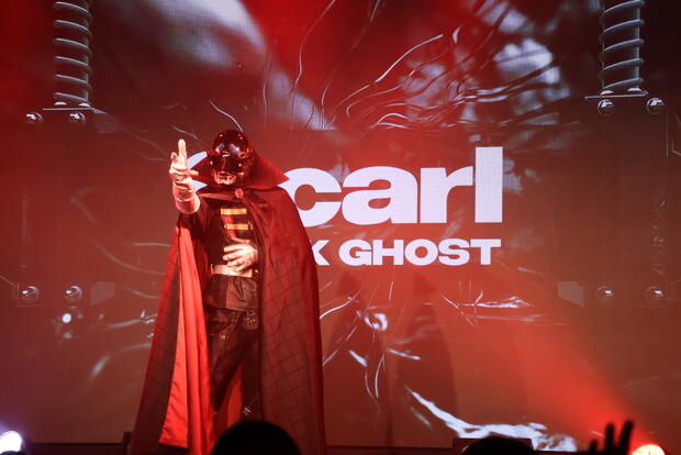 ぬらりと不気味な空気をまとった仮面の男・スカール(中塚皓平)が黒いマントを翻して壇上に現れると、指令を受けたブラック・ゴーストたち(BG SOLDIERS)が劇場に招かれていた宣伝特派員をひとり、またひとりとさらっていきます。