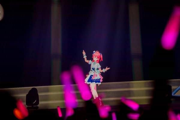 鷹嶺ルイ「オーバード」、癒月ちょこ「NoDistance」、小鳥遊キアラ「DO U」、ロボ子さん「リルビ」に続いて長期休養明けのラプラス・ダークネスが登場し「Dark Breath」でブランクを感じさせないパフォーマンスを見せる。おかえり、ラプ様!キアラ、ルイの「ホロ鳥」コンビによるMCを挟んで、大空スバル「スターライト」、尾丸ポルカ「ペルソナ」、アユンダ・リス「生きるよすが」、沙花叉クロエ「擬態ごっこ」と見事なパフォーマンスが続くが、中でも「生きるよすが」のカバーはリスちゃんの歌唱力に客席が圧倒される空気を感じられた。