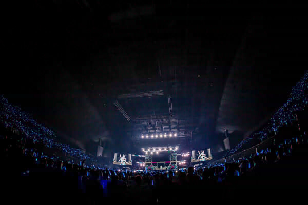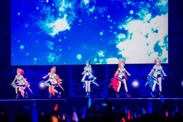 フレア、みこち、ポルカ、団長の「しらけん」メンバー4人の登場に湧く会場。「プロジェクトセカイ」のアニバーサリーソング「群青賛歌」をカバーする4人が歌い始める中、おそらく全てのファンが同じ思いを抱いていた。その瞬間、フレアが「なんか1人たりないよなぁ!」と叫ぶと、ステージ上にDAY1には参加していなかった星街すいせいを召喚。まさかのサプライズでフルメンバーがそろった「不知火建設」にファンは大歓喜。メンバーそれぞれのイメージカラーのペンライトが振られる中、文字通り本日最高潮の盛り上がりとなった。しらけん最高!
