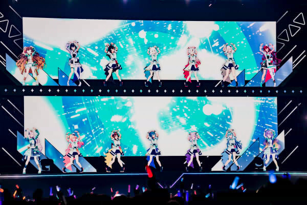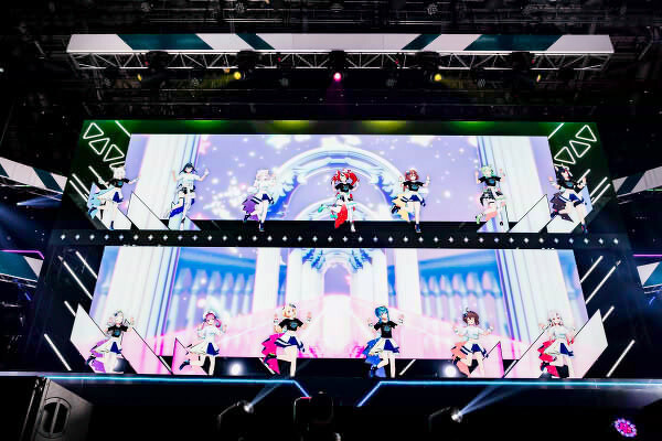 ゲーマーズ3人のMCでは自由過ぎるころねのムチャぶりで客席が困惑する場面もありつつペンライトによる綺麗なウェーブも実現。EN組のクロニー、ファウナ、ハコスはTikTokで海外人気の高かったevening cinemaのシティポップ「summertime」を披露。ラミィ、アキロゼ、まつり、ねねち「放課後ストライド」、ぺこーら、ししろん、フブキング「ワールドワイドフェスティバル」とアップテンポなボカロ曲カバーの後は、まつり&ねねちの清楚アイドル?コンビが最後のMCでラストスパートに向けて客席を盛り上げた。