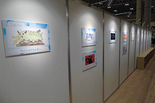 幼稚園児となったホロメンが園児らしくぶっとんだ発想で課題をこなす「ホロライブ幼稚園」のブース。配信中に描かれた絵や作文が展示されていたにぇ