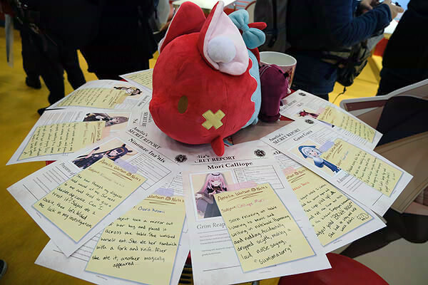 その他にも、開場の各所にある難問を全てクリアすればノベルティがもらえる「謎解きラリー」や、いたるところに残されたホロメンのサイン、会場内で定期的におこなわれるマスコットたちの練り歩き行列や、コスプレイヤーのパフォーマンスステージなど、ブースに並ばずとも楽しめる要素が盛りだくさんで、ホロライブのファンなら飽きる暇なく楽しめるイベントとなっていました。