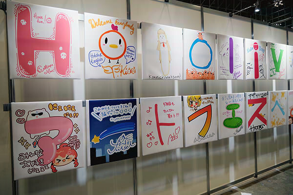 ブースの外側を彩る1文字ずつメンバーが担当したウェルカムボード。それぞれの個性が光る