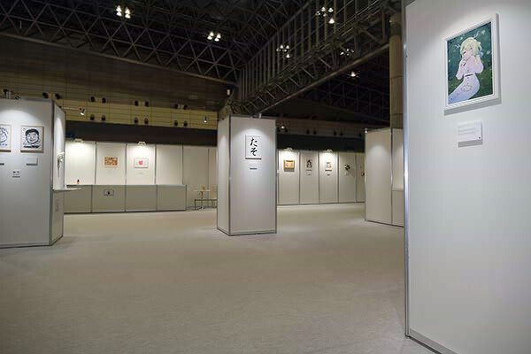 今回のEXPOの注目ブースは、ホロメンが思い思いに作ったアート作品が展示されている「ホロライブ・アートフェス」。独創的な絵画からプロはだしのイラスト、習字や怪しげな立体造形などホロライブらしさ?の溢れる作品展示に大勢のファンが感嘆。3期生がお互いのオリジナル曲をシャッフルして歌うMVや、「ジャンプ+」連載のマンガ「ホロックスみーてぃんぐ!」の生原稿展示など見ごたえのある作品と並んで人気を集めていたのは、すばちょこるなたんが今回の展示のために配信で制作した「YAGOO像」。展示の周りにはひと目見ようというファンの人だかりが。アートフェスの展示エリアは大人気でたびたび入場制限がかかるほどでした。